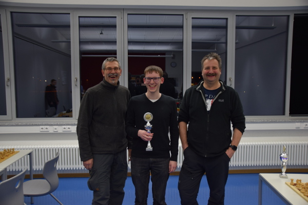 Mit 17 Punkten aus 22 Partien wurde er zum dritten Mal in Folge Bezirksmeister im Blitzschach. Seine Verfolger Dennis Britsch (16,5 Punkte) und Jürgen Rutz aus Winterlingen (16,0 Punkte) haben sich mit ihm gemeinsam zur Württembergischen Meisterschaft qualifiziert, die am 01.02.2020 in Tuttlingen stattfindet.