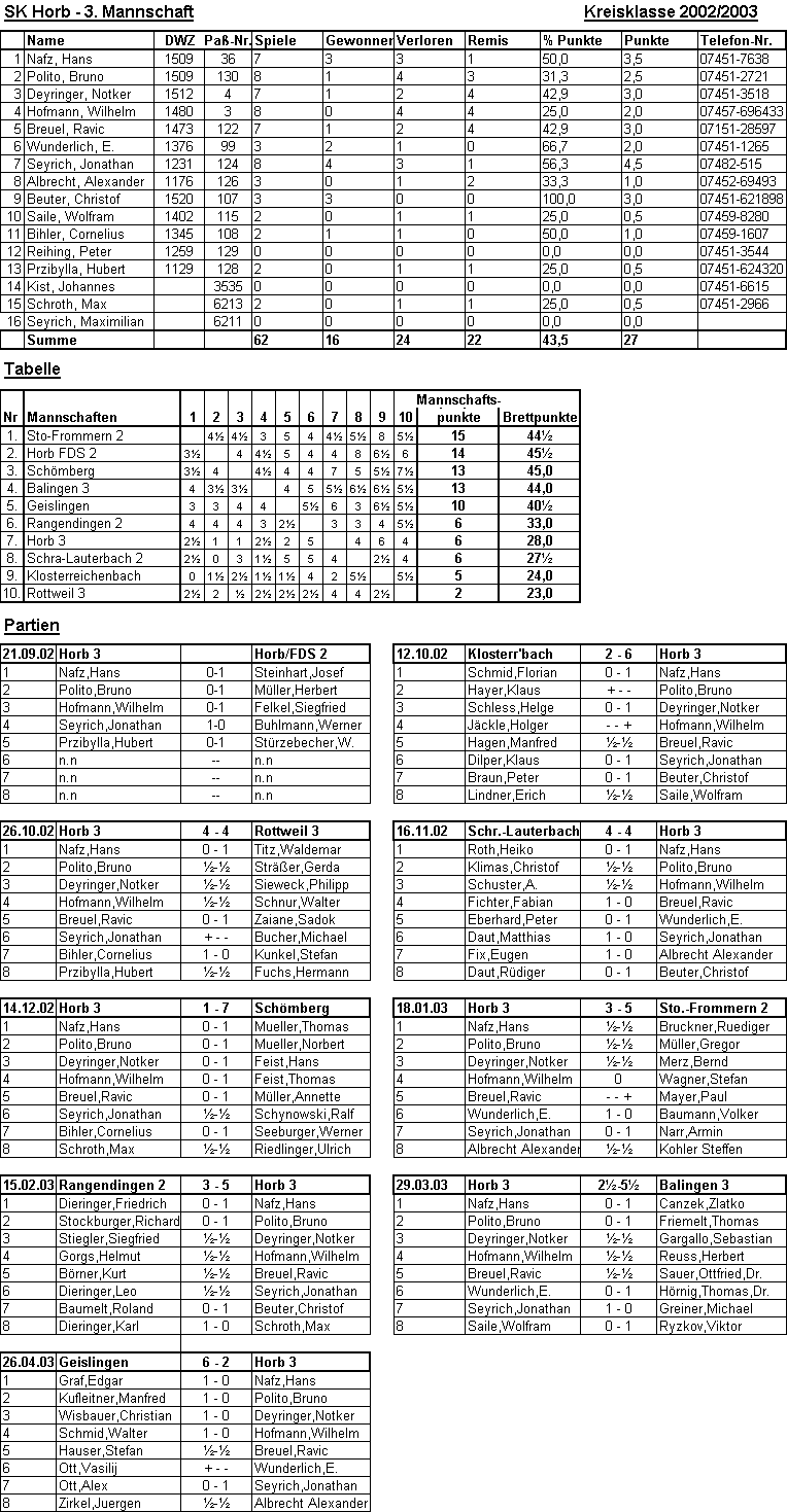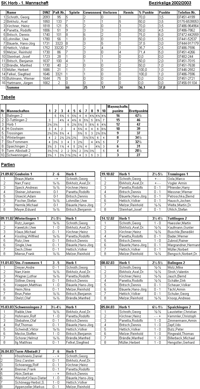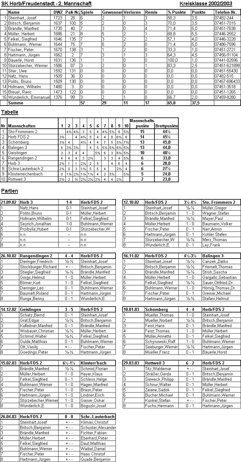 | Jahr | Vereinsmeister | Blitzmeister | Freischach | Aktiv Chess |