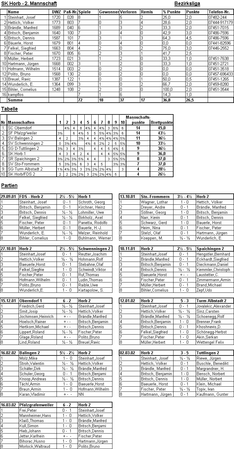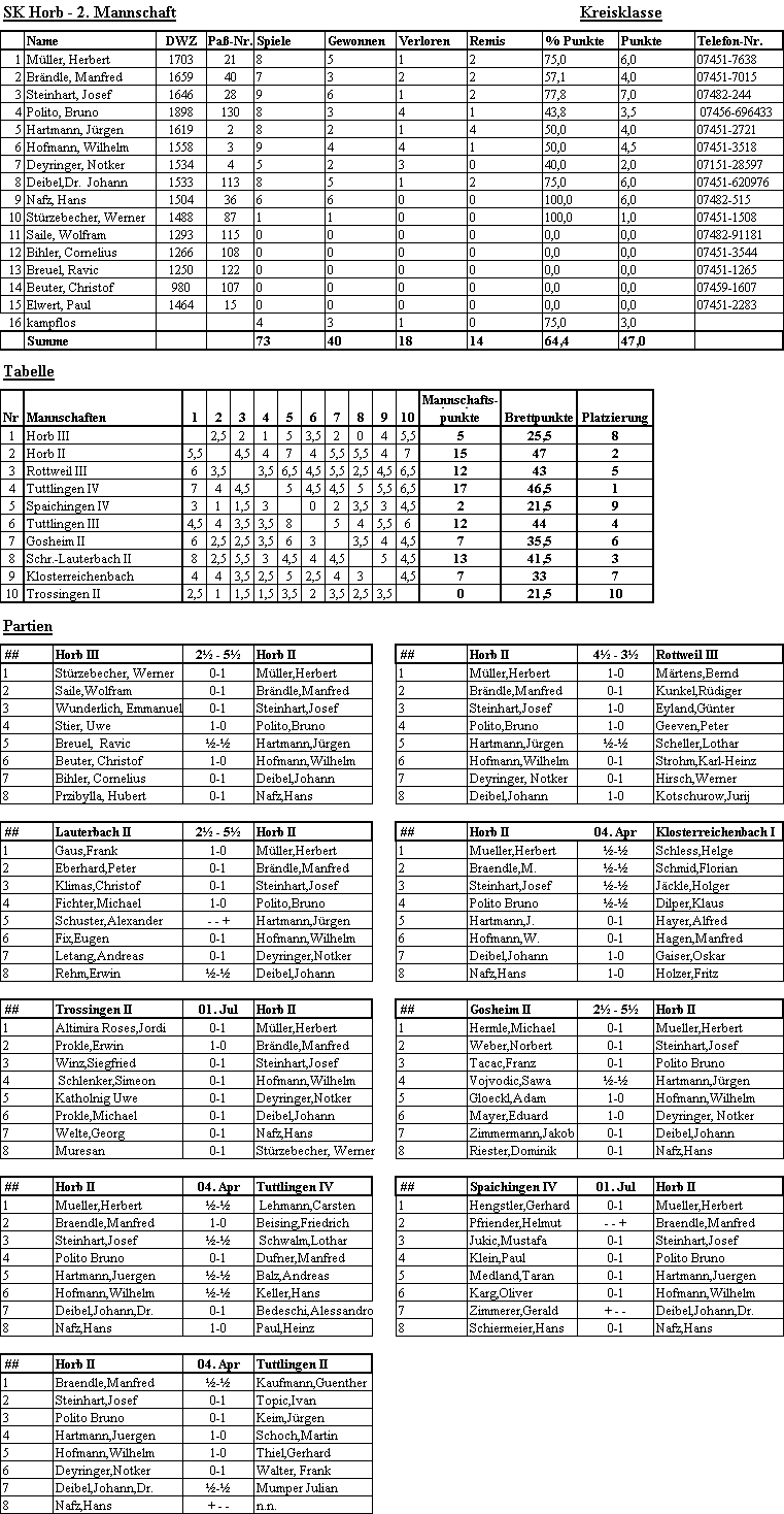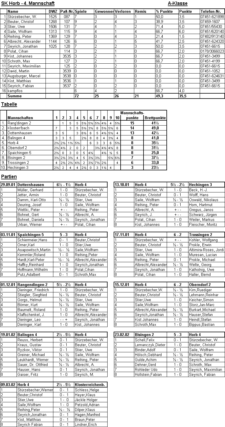 | Horb 1 | Horb 2 | Horb 3 | Horb 4 | Horb 5 | 4er-Pokal |